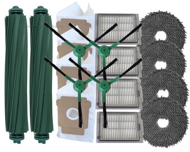 Neoriginální sada příslušenství obsahuje 1x hlavní kartáč, 2x HEPA filtr, 2x boční kartáček, 2x mop, 2x sáček a je určena pro robotické vysavače iRobot Roomba 405 Combo Plus, Roomba 405 Combo Plus G185040, Roomba 405 Combo Plus G185240, iRobot Roomba 505 Combo Plus, Roomba 505 Combo Plus N185040, Roomba 505 Combo Plus N18540.. Při výměně filtrů, kartáčů i dalšího příslušenství postupujte dle návodu k obsluze vašeho vysavače a dodržujte četnost výměny jednotlivých dílů, v něm uvedenou. Výměna kartáčů je doporučena mezi 6 až 12ti měsíci - v závislosti na jejich aktuálním opotřebení. Výměna HEPA filtru je doporučena 1x ročně, nebo dříve, je-li poškozený. Sáčky jsou vyrobeny z netkané textilie. Mopy jsou pratelné.