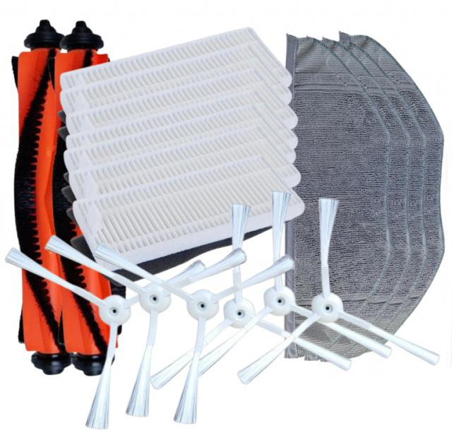 Sada náhradního příslušenství je určena pro robotické vysavače XIAOMI Mijia G1, Mi Robot Vacuum Mop Essential, Mi Robot Vacuum Mop Essential 2, Mijia Sweeping Robot G1 MJSTG1 Vacuum Mop Essential, Mijia Mi G1, Mi Essential SKV4136GL G1 Xiaomi a Rowenta X-Plorer S95 - RR7935WH, RR7947WH, RR7975WH, RG7975WH, RG7987WH a Tefal RG7975WH, RG7987WH... Sada obsahuje 1x hlavní kartáč, 4x HEPA filtr, 4x boční kartáček, 2x mop z mikrovlákna. Při výměně filtrů, kartáčů i dalšího příslušenství postupujte dle návodu k obsluze vašeho vysavače a dodržujte četnost výměny jednotlivých dílů, v něm uvedenou. Výměna kartáčů je doporučena mezi 6 až 12ti měsíci - v závislosti na jejich aktuálním opotřebení. Výměna HEPA filtru je doporučena 1x ročně, nebo dříve, je-li poškozený. Mopy jsou pratelné.