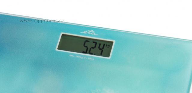 Digitální osobní váha ETA Judy zaujme svým netradičním designem s imitací tmavé kůže. Efektivní plastový povrch je velmi odolný a dobře se udržuje. Přístroj váží s přesností na 100 g ihned, jakmile se na ni postavíte. Maximální kapacitní odolnost je 180 kg. Na LCD displeji se naměřené hodnoty zobrazují ihned a čitelně. Můžete si vybrat vlastní zobrazení jednotek – kilogramy, libry či britské kameny neboli stone. Automatické je jak zapnutí tak i vypnutí, což efektivně šetří baterie, které jsou součástí balení. Na slabou baterii a přetížení včas upozorní indikátory. Předností jsou protiskluzové nožičky a snadná hygienická údržba vážicí plochy.